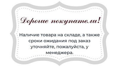 Доставка по г. Минску осуществляется БЕСПЛАТНО. О доставке и стоимости в другие населенные пункты можно узнать у менеджера.
