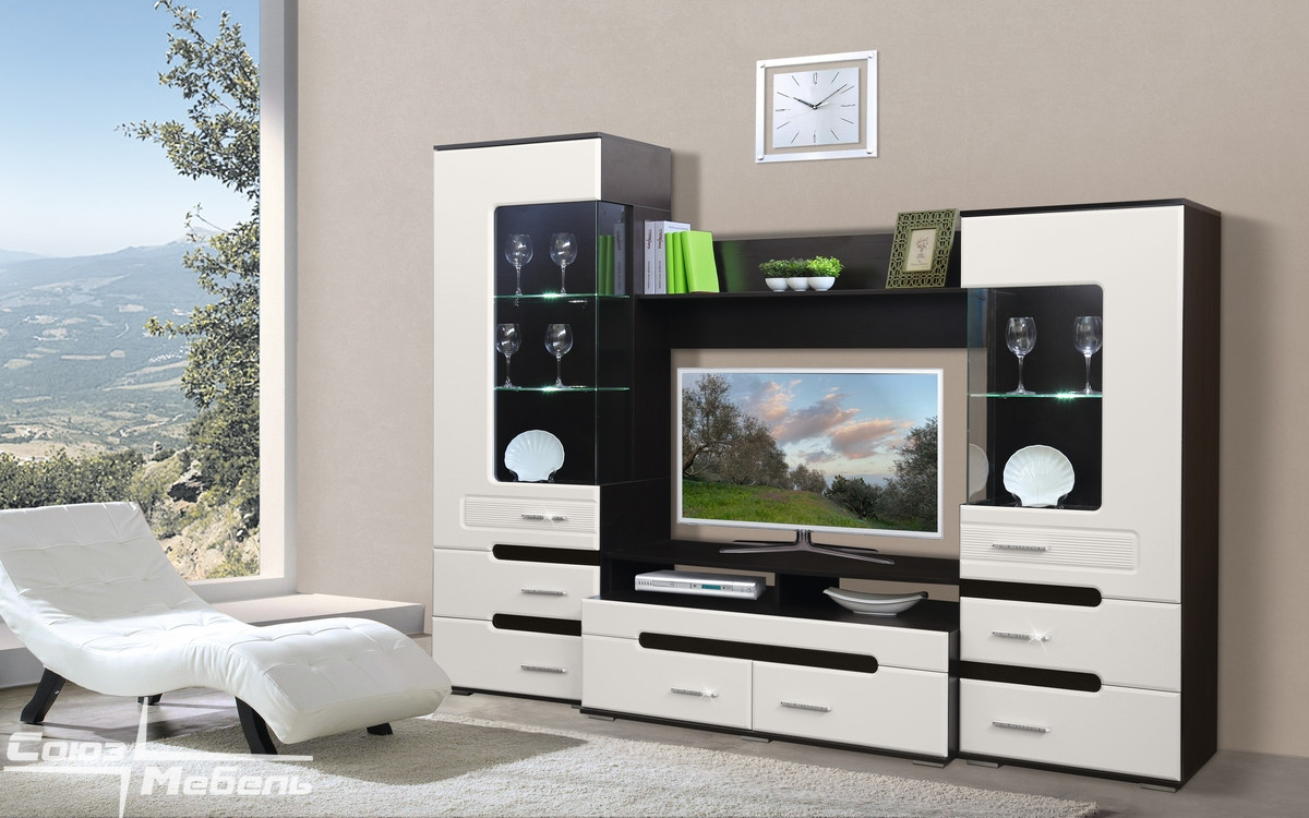 Модульная гостиная ВЕСТА (Венге/ Белый софт) Союз-Мебель
