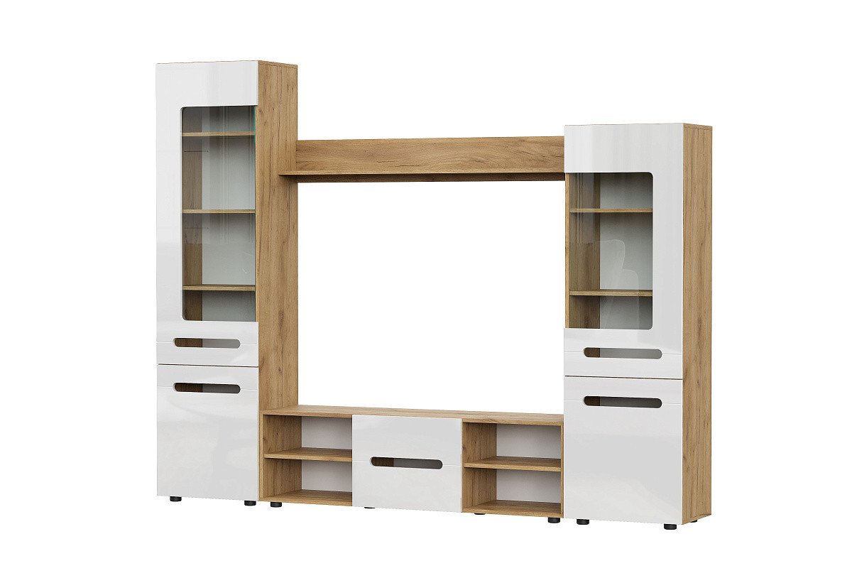Гостиная МГС 6 (Дуб золотой/ Белый глянец) NN Мебель