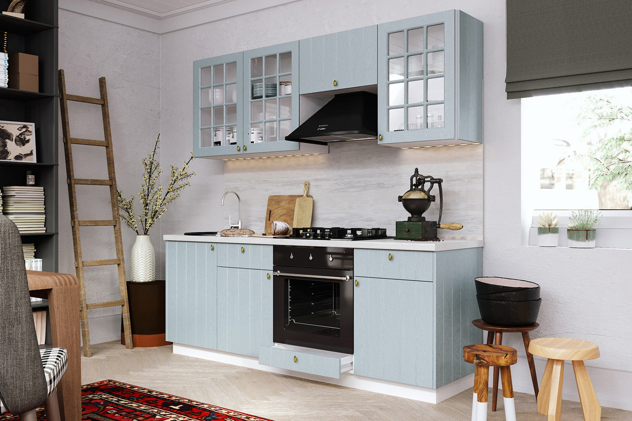 Утонченность кухни «Прованс» невероятно притягательна. Фасад декорирован вертикальными параллельными бороздками, создающими эффект деревянных реек. Это вносит винтажные нотки в дизайн, а изящные ручки цвета состаренного металла и прозрачное стекло придают кухне по-европейски элегантный вид. Актуальные оттенки и матовая текстура дерева превосходно смотрятся в интерьере.